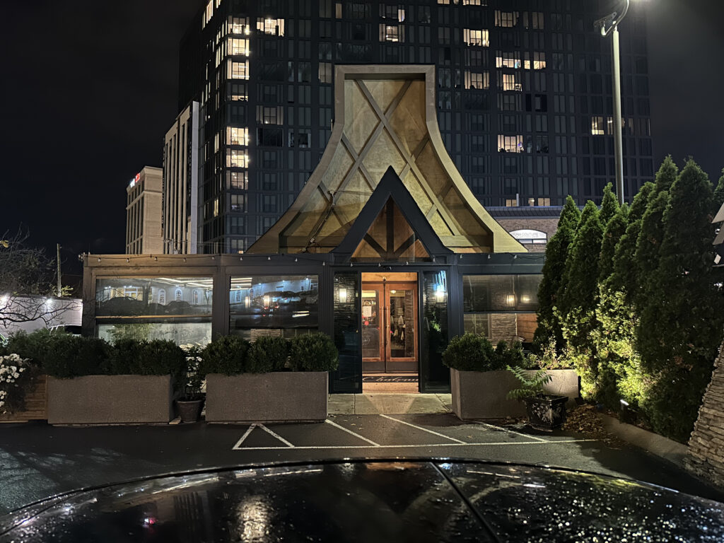 A calm, open dining space where guests can sit comfortably in any season. The glass, screens, and pergola shift with the weather, keeping the atmosphere bright and welcoming.
